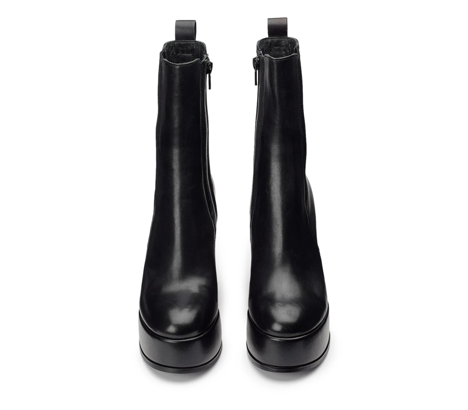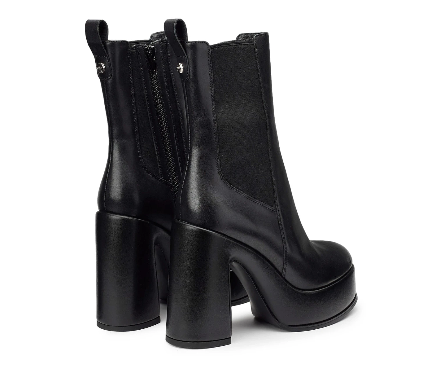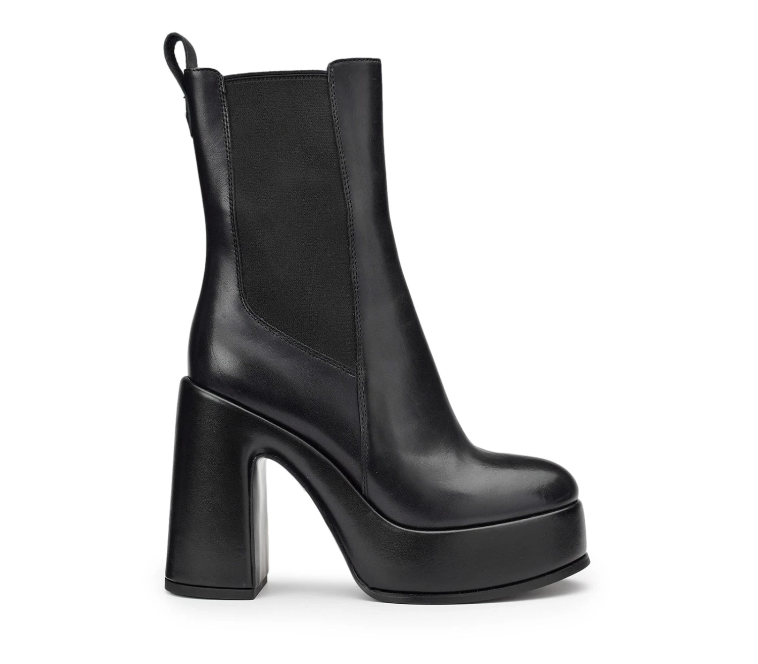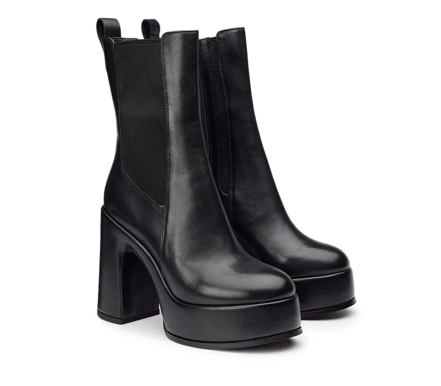 Perfetti per elevare lo sguardo e il look, gli stivaletti chelsea firmati Cult sono caratterizzati da altissimi plateau completati da tacchi a blocco vertiginosi. Realizzati in pelle, presentano inserti elastici e sono chiusi da comode zip laterali. Altezza tacco 12cm