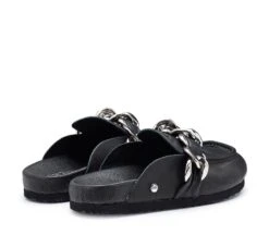 Le creazioni firmate Cult Bolt questa stagione puntano su silhouette d’archivio e motivi classici, come mostrato su questi mocassini. Realizzati in pelle nera traforata sull’iconico puntale d’acciaio, presentano un design con cinturino a T, elevato da una moderna suola platform sur ton.