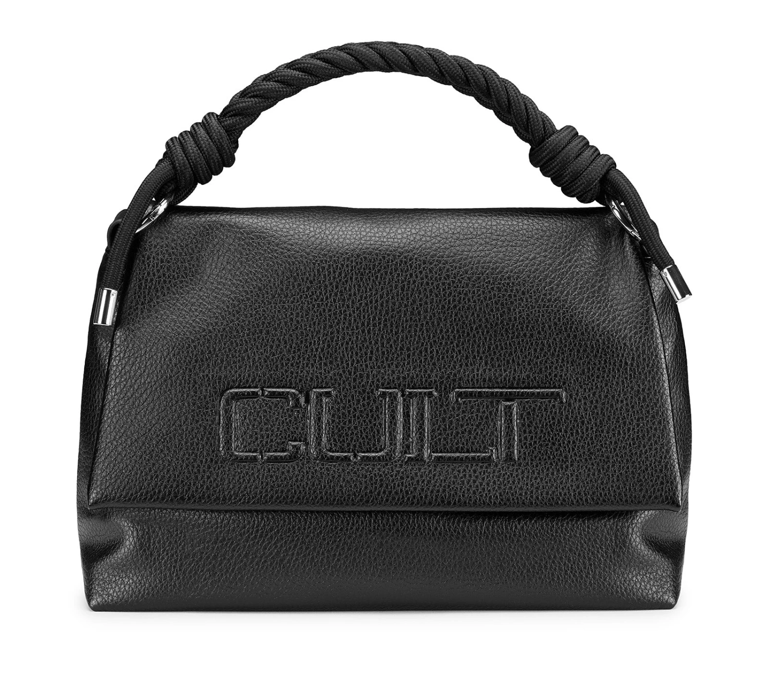 La nuova borsa BETH in ecopelle nera firmata CULT si distingue per la sua linea minimal, che le conferisce un aspetto moderno e originale. La chiusura con patta e il dettaglio del logo in rilievo sur tone aggiungono un tocco di carattere, mentre il manico in cordone completa il design con un elemento di stile. Perfetta per chi cerca un accessorio di tendenza, dallo stile audace e contemporaneo. Tracolla inclusa. Dimensioni 24x16x9.
