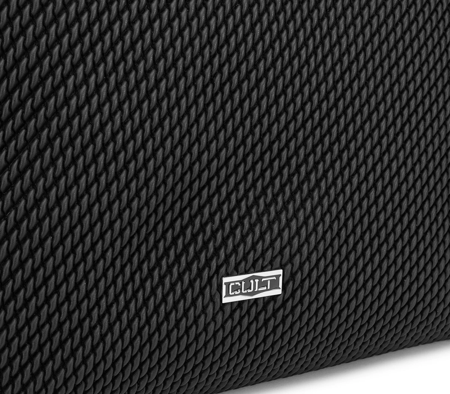 La nuova borsa a spalla SHERYL in ecopelle nera con lavorazione effetto intreccio firmata CULT, si distingue sia per la sua linea minimal sia per il suo look elegante e glam-rock allo stesso tempo. I dettagli metallici come il logo lettering del brand e il manico a catena con borchie color silver, aggiungono al design un elemento di stile. Perfetta per chi cerca un accessorio di tendenza, dal gusto contemporaneo. Dimensioni: 34x28x16.