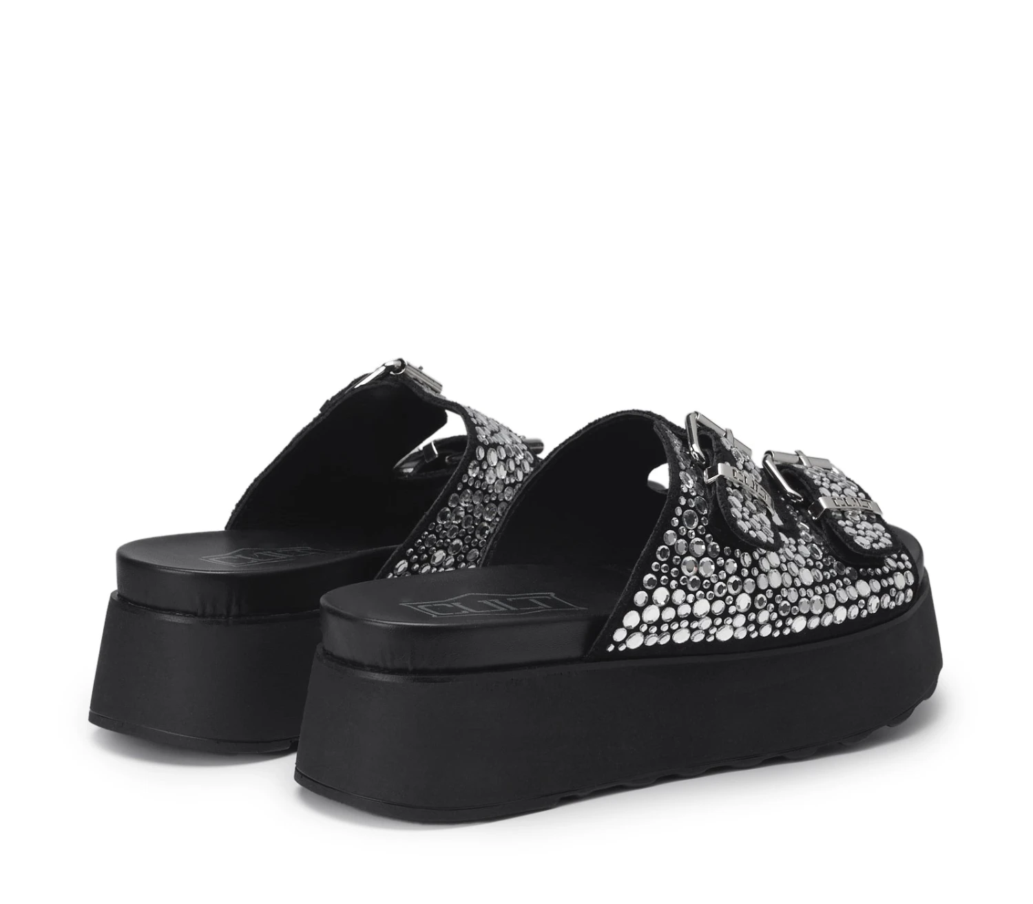 Attuali e alla moda, senza rinunciare alla propria anima rock, questo nuovo modello JANIS firmato Cult per l’estate 2025 diventerà un vero e proprio must-have. Due fasce in pelle impreziosite da strass luminosi, fibbie in metallo con logo Cult inciso e suola platform rendono questi sandali perfetti da abbinare a ogni outfit, per un look davvero glam-rock.