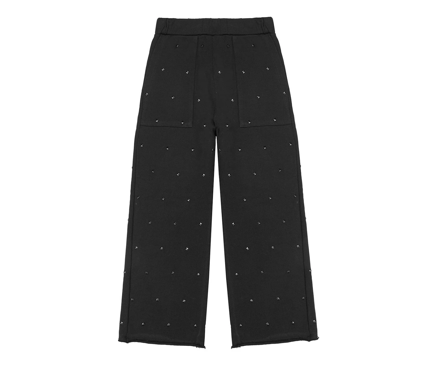 Pantaloni sportivi in jersey double face con borchie piramidali all over. Il modello presenta una vestibilità comoda con elastico in vita e lunghezza leggermente cropped ed è completato da due ampie tasche.