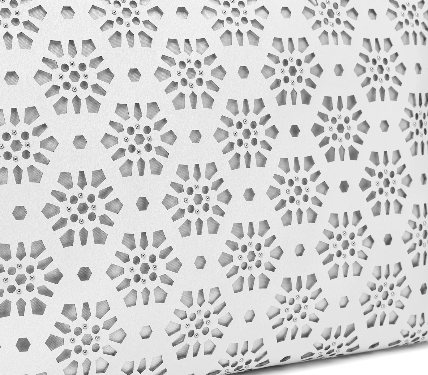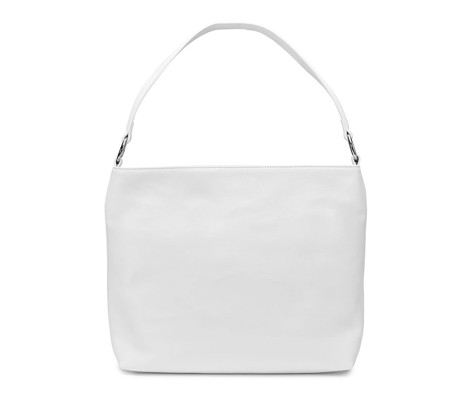 La nuova hobo bag NINA in ecopelle bianca firmata CULT, pensata per la stagione primavera-estate 2025, unisce eleganza e carattere. Arricchita da mini borchie bubble in metallo color argento, dettagli floreali cut-out e il logo lettering del brand, questa borsa aggiunge un tocco decisamente glam-rock al tuo look. Un vero must-have per non passare inosservata. Tracolla inclusa. Dimensioni: 31x28x11.