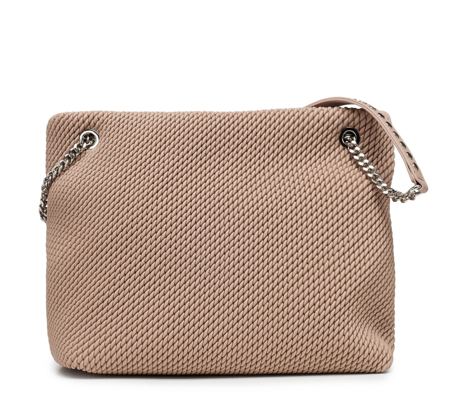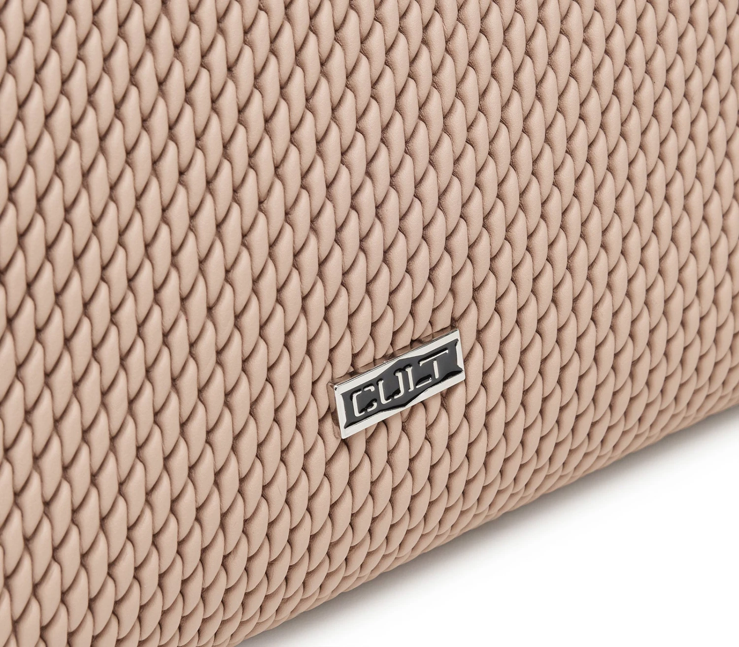 La nuova mini hobo bag SHERYL in ecopelle color sabbia con lavorazione a effetto intrecciato firmata CULT, si distingue sia per la sua linea minimal sia per il suo look elegante e glam-rock allo stesso tempo. I dettagli metallici come il logo lettering del brand e il manico a catena con borchie color silver, aggiungono al design un elemento di stile. Perfetta per chi cerca un accessorio di tendenza, dal gusto contemporaneo. Dimensioni: 32x28x12.