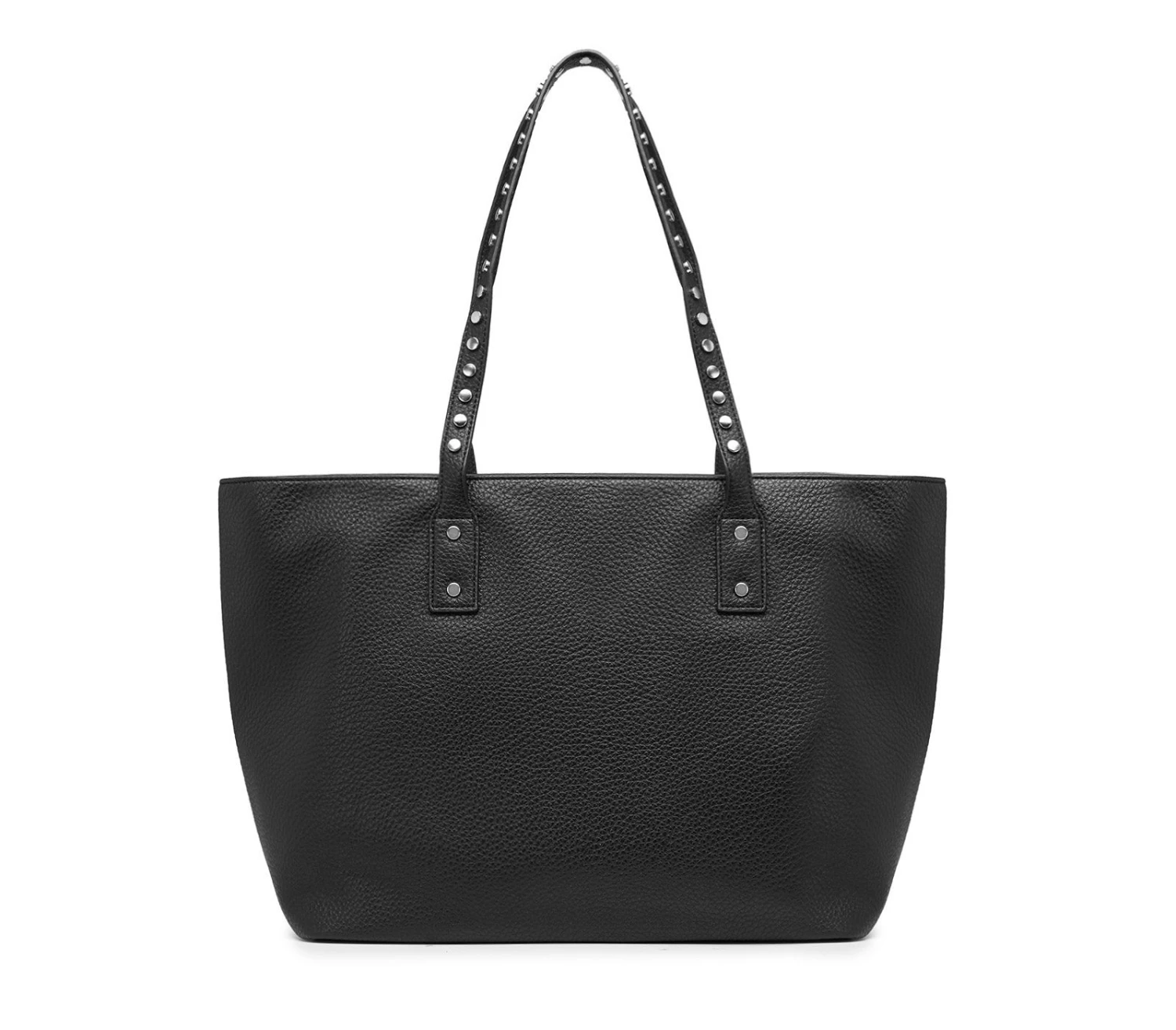 L’elegante mini shopper ALISON in ecopelle nera firmata CULT si distingue per la sua linea minimal che le conferisce un aspetto moderno e originale. I dettagli metallici come il logo con il nome del brand o i lunghi manici con mini borchie silver aggiungono al design un elemento di stile. Perfetta per chi cerca un accessorio di tendenza, dal gusto audace e contemporaneo.