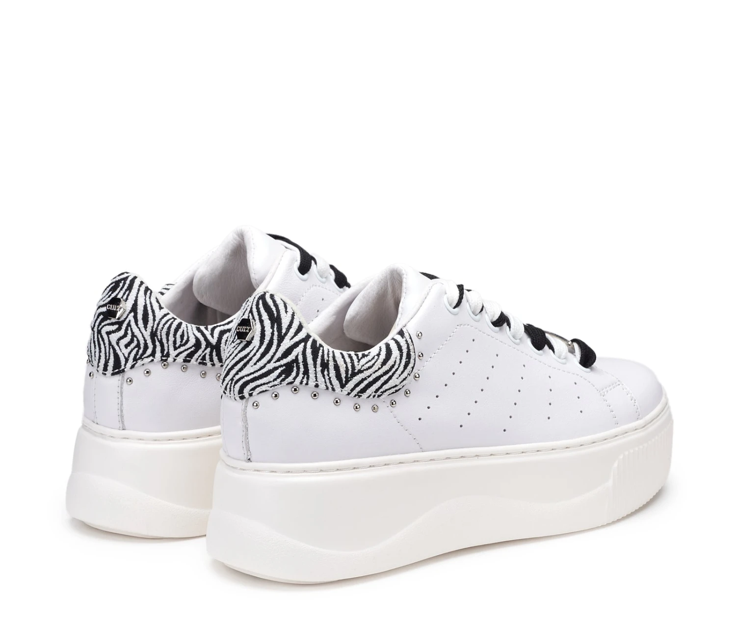 Dettagli animalier per le nuove sneakers PERRY in pelle firmate Cult per questa primavera/estate. Sono caratterizzate da lacci di color bianco e/o nero, da un contrafforte a contrasto in stampa zebrata e sono impreziosite da piccole borchie metalliche per un effetto davvero glamour. Da indossare sotto un vestito slim e blazer per un mix moderno e d’effetto.