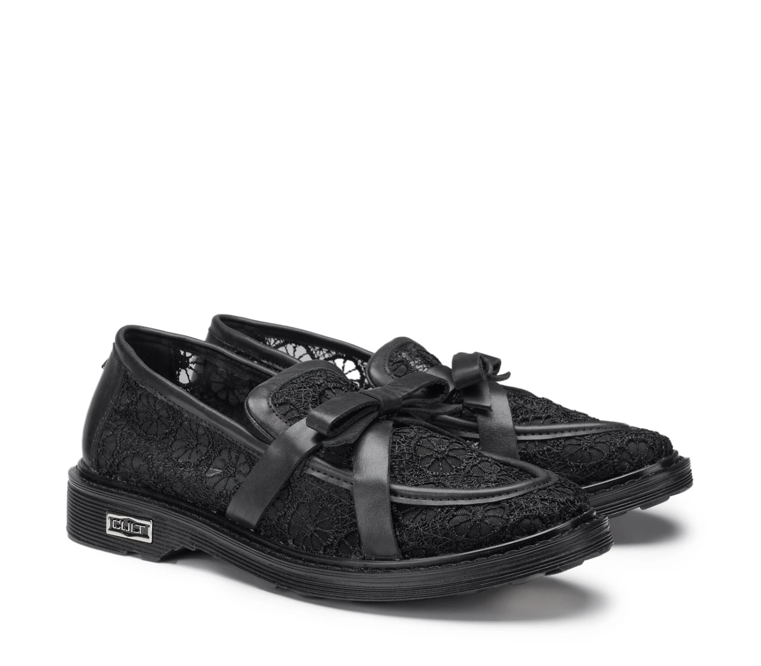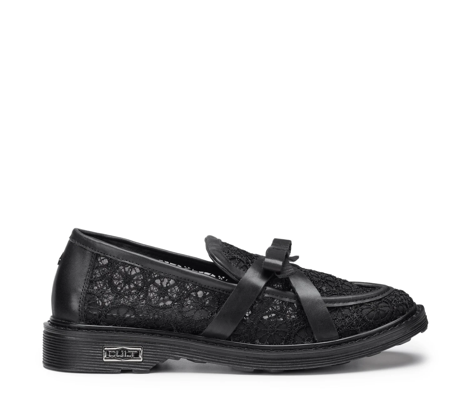 Questo nuovo ed originale mocassino da donna firmato Cult esprime audacia e femminilità. Presenta una tomaia nera con stampa floreale in mesh, che dona un effetto leggero e delicato. Le bande laterali in pelle nera, eleganti e raffinate, si uniscono al centro per creare un fiocco, aggiungendo un tocco di femminilità e originalità al design. Le rifiniture in pelle definiscono i contorni e completano il look, conferendo un contrasto di texture e un accento di classe. Un mix perfetto di stile romantico e dettagli moderni.