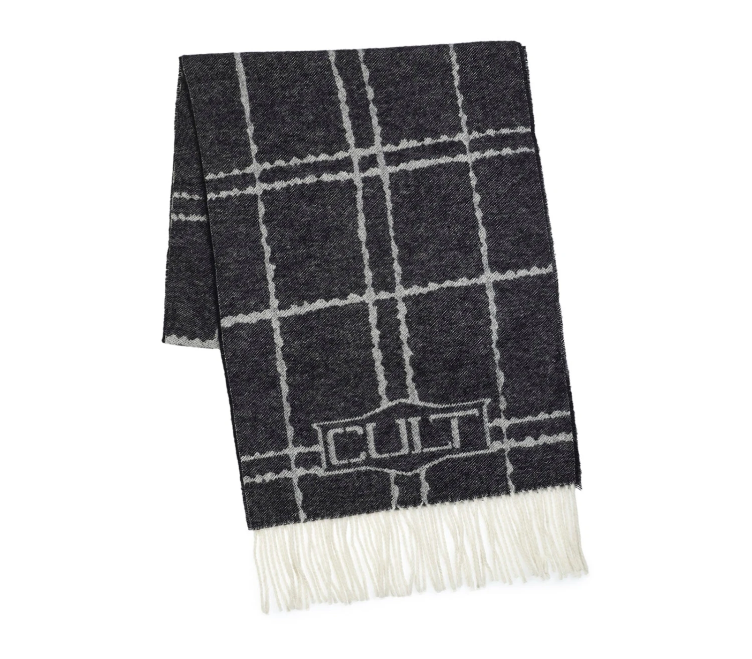 Per un tocco finale di coolness, scegliete la morbidezza lussuosa di questa sciarpa in misto lana firmata Cult. Il modello frangiato con logo è qui proposto in una sofisticata versione a quadri. Dimensioni 37×200