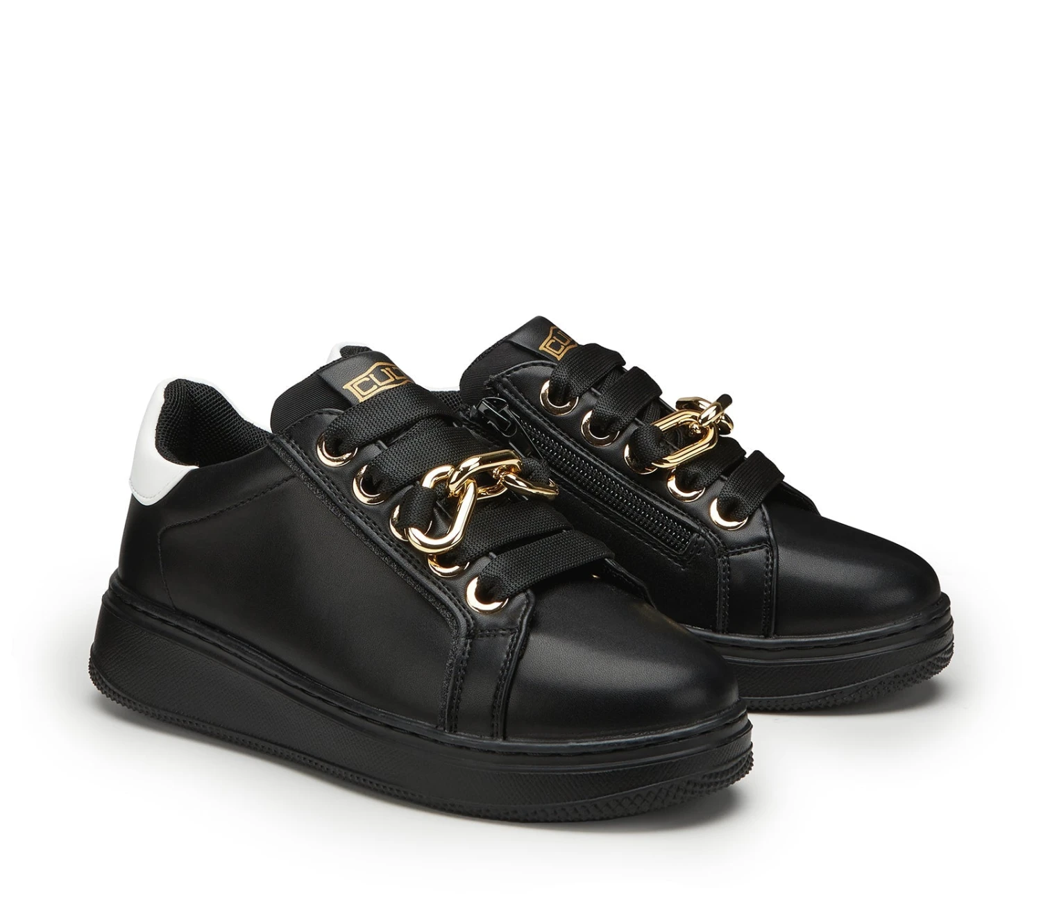 Le sneakers in ecopelle della collezione Cult Kids sono ideali per il guardaroba quotidiano della vostra piccola. Progettate con lacci, presentano un giocoso accessorio color oro che spicca sul davanti.