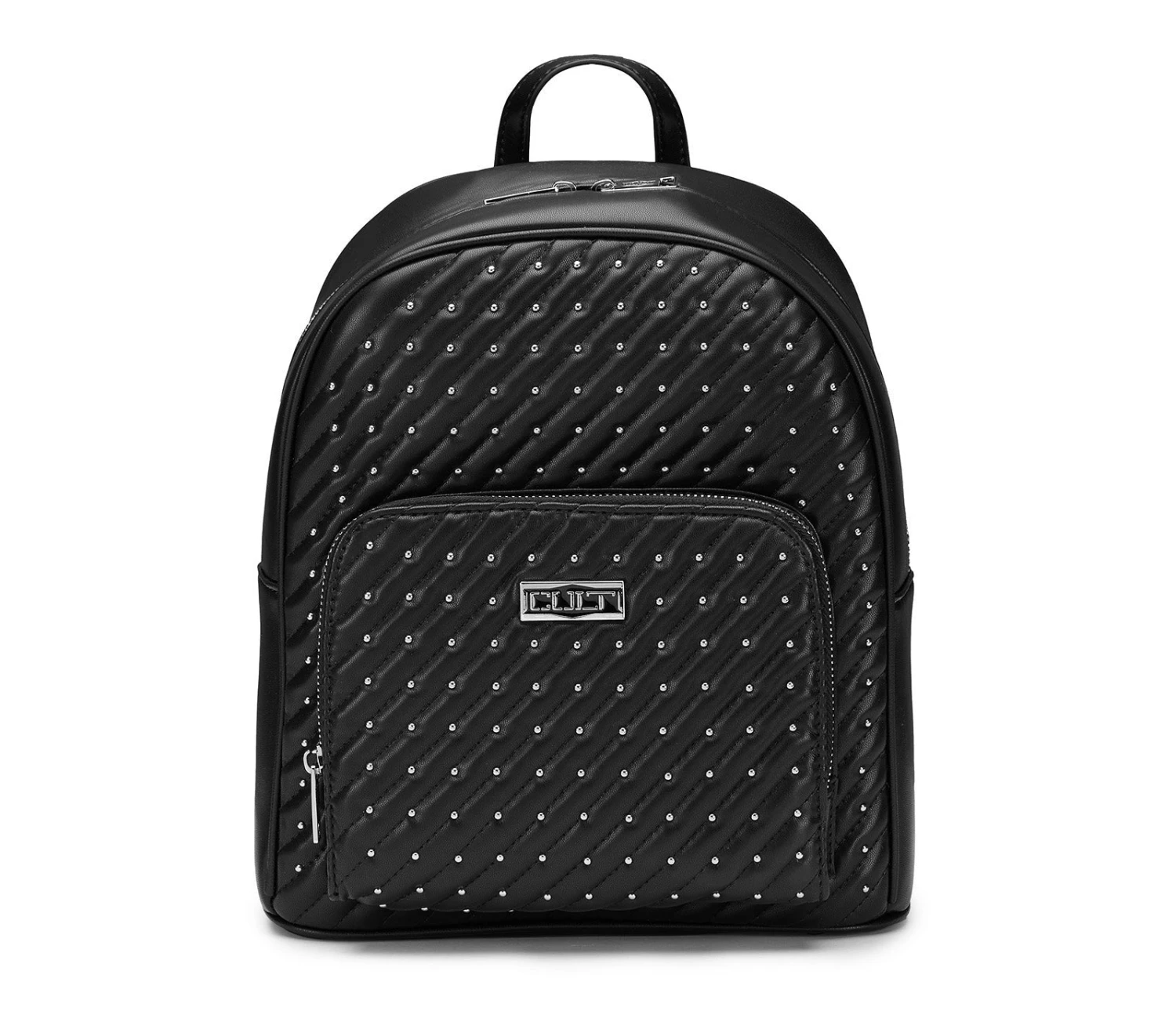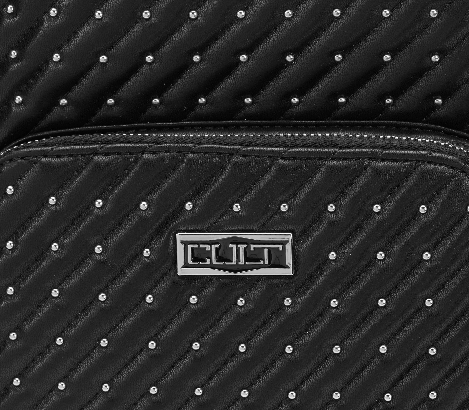 Lo zaino BESSIE in ecopelle nera firmato CULT si distingue per la sua linea minimal che conferisce un aspetto moderno e decisamente glam-rock. I dettagli metallici come le mini borchie silver all-over, aggiungono al design un elemento di stile. Presenta una tasca esterna frontale con chiusura a zip e bretelle regolabili. Perfetto per chi cerca un accessorio di tendenza, dal gusto audace e contemporaneo. Dimensioni: 25x29x10.