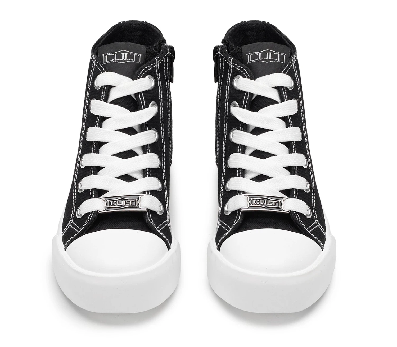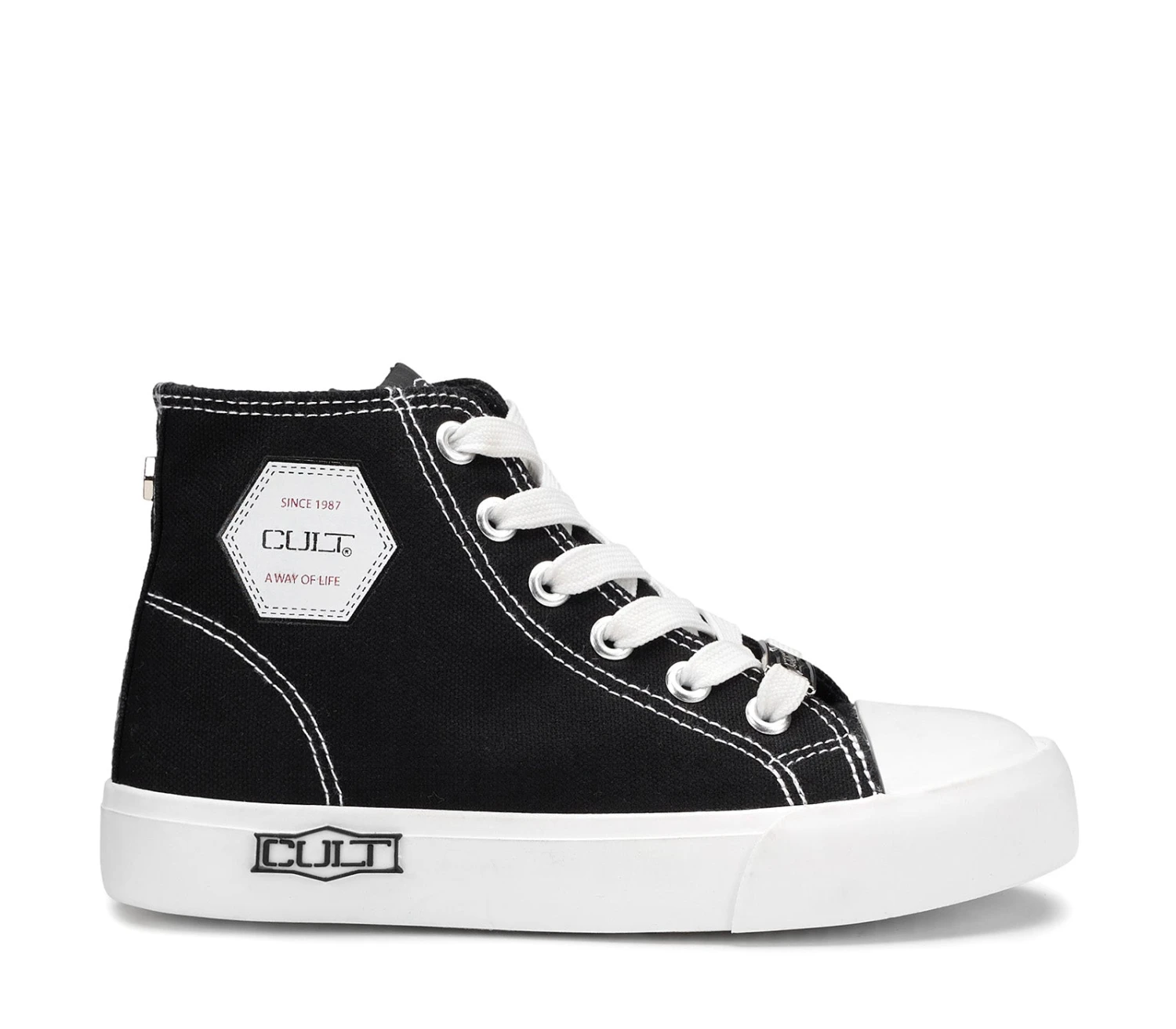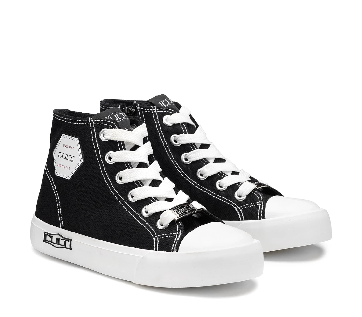 Queste sneakers alte di Cult Kids presentano un dettaglio esagonale con il logo del brand. Il modello ha una silhouette classica con lacci sul davanti, ma si indossa tramite una pratica chiusura laterale con zip.