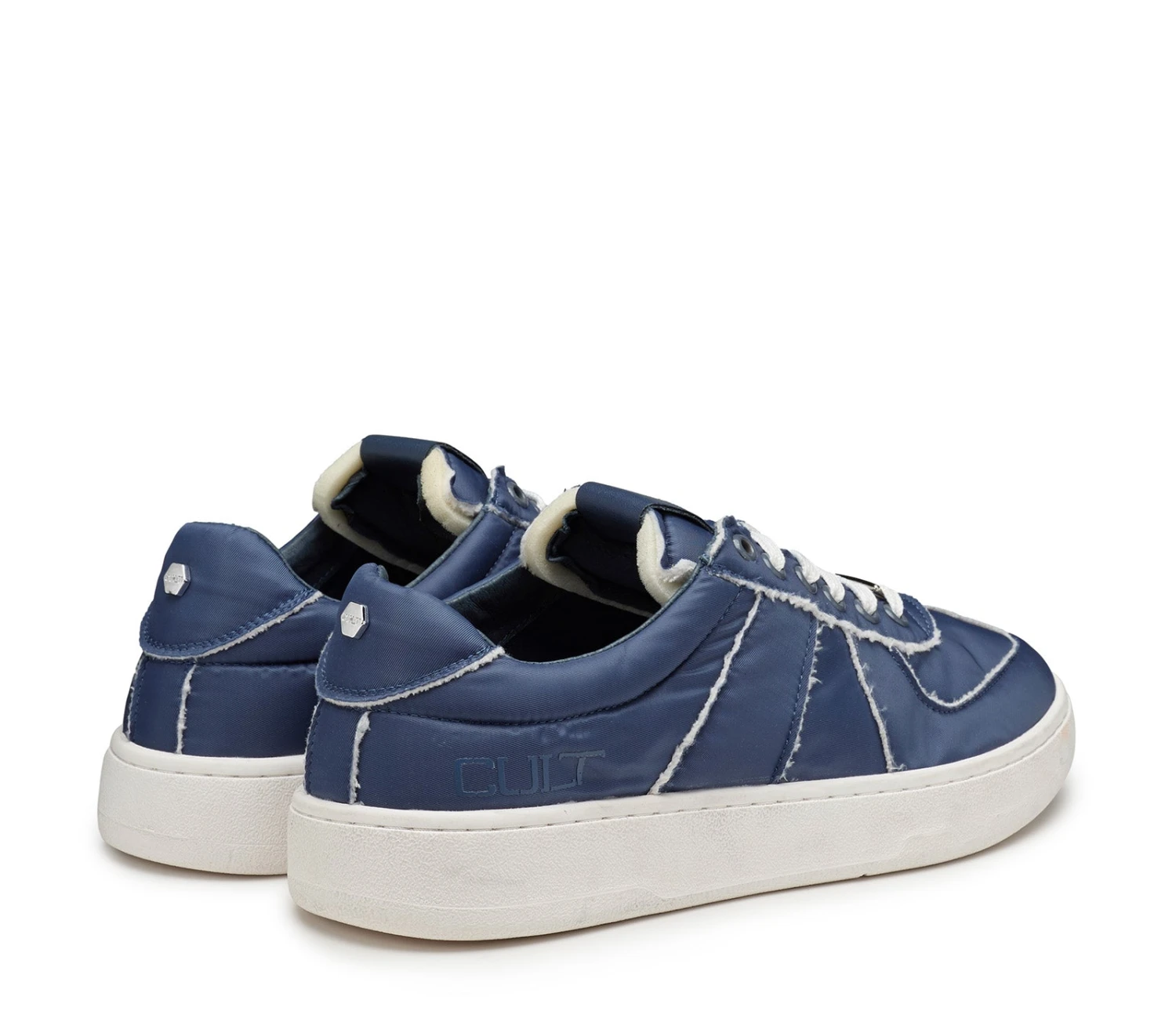 Le sneakers di Cult si esprimono con linee dinamiche e dettagli che richiamano i segni distintivi del brand. Si caratterizza per la tomaia in nylon con le cuciture sur ton in rilevo e il logo stampato sulla parte laterale.