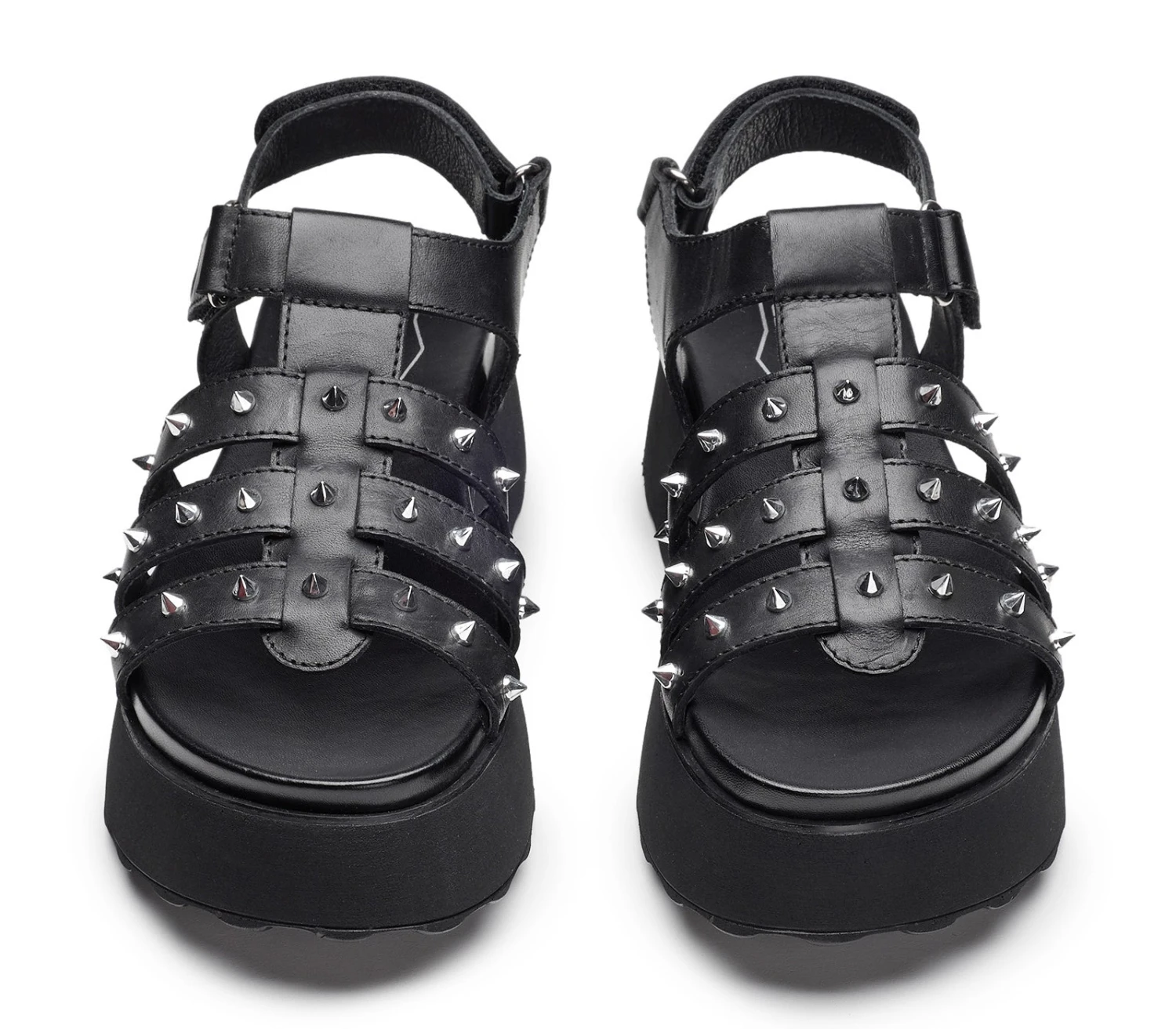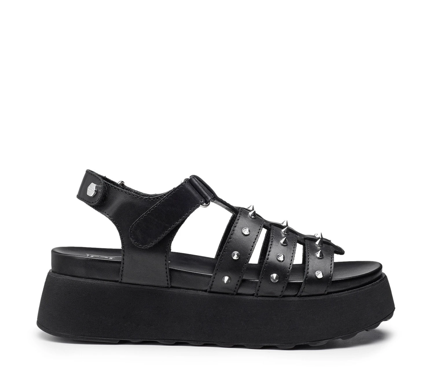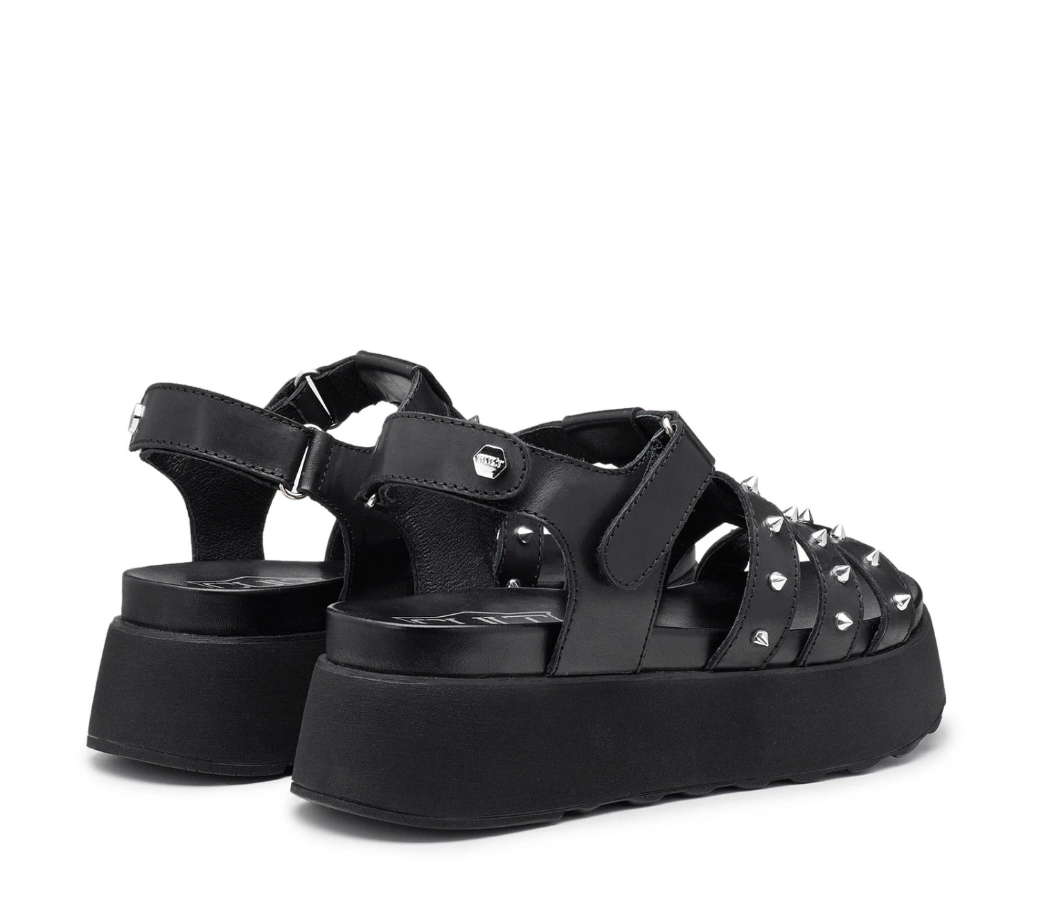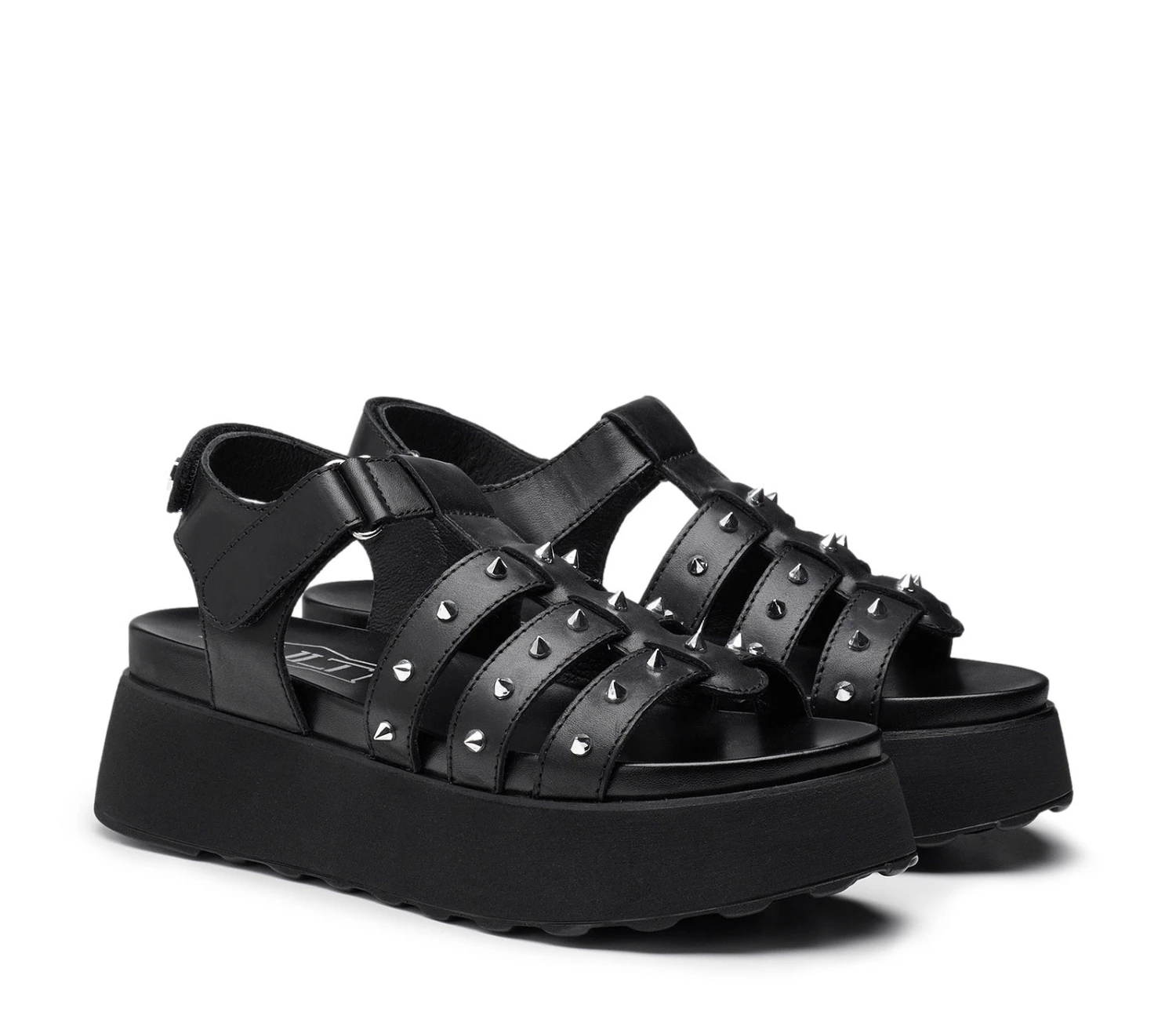 Comodi ma senza mai rinunciare alla propria anima rock questi sandali firmati Cult per l’estate 2024. Tre fasce in pelle impreziosite da borchie di metallo, chiusura con cinturino in velcro posteriore e suola rinforzata per questi sandali da abbinare ad ogni outfit per un tocco glam rock. Altezza suola 6,5cm