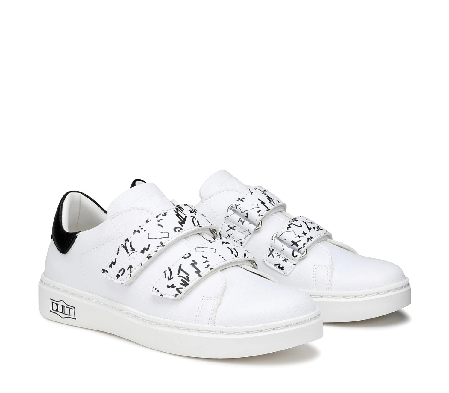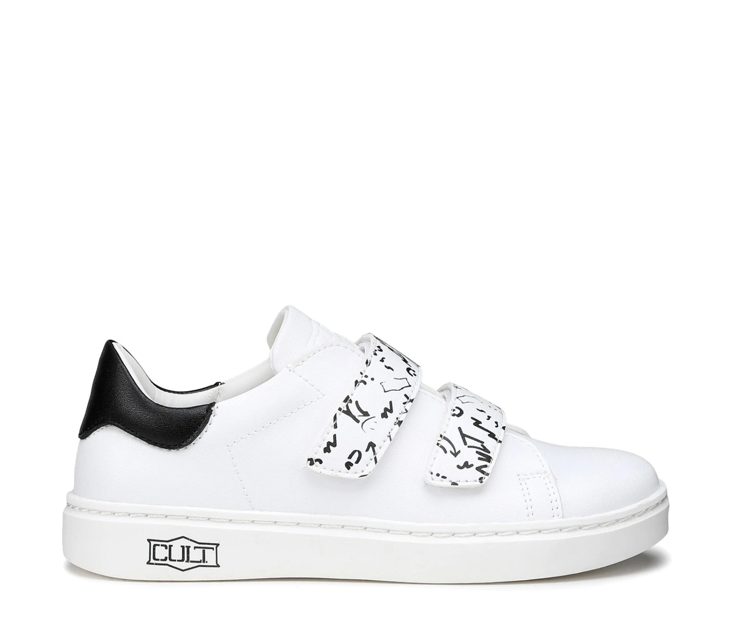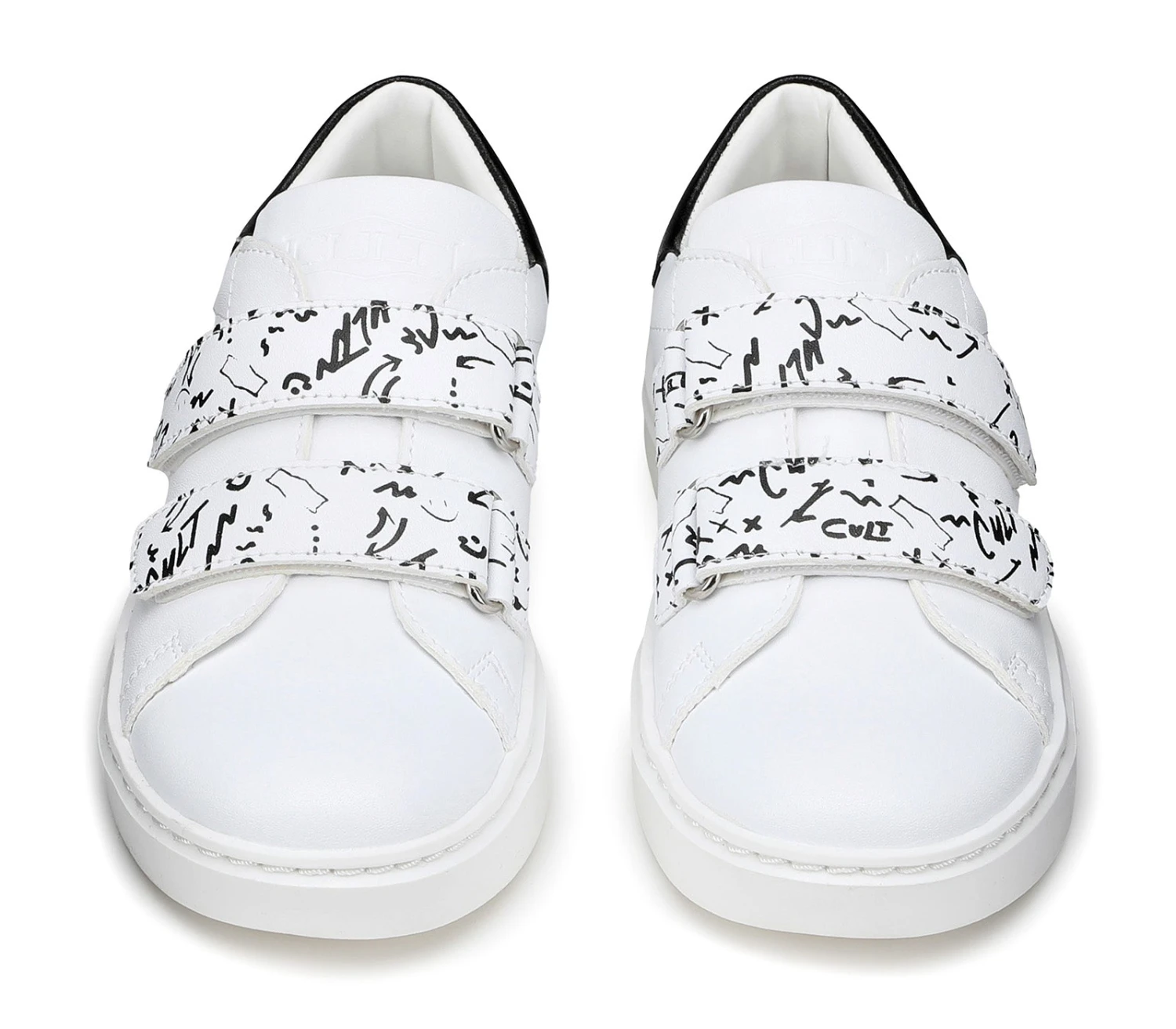 I bambini hanno bisogno di scarpe che possano stare al passo con il loro stile di vita attivo: ecco le sneakers in eco pelle bianca firmate Cult Kids. Comode da calzare e facili da chiudere grazie alla doppia linguetta a strappo, sono siglate dal logo del brand e dal talloncino a contrasto.