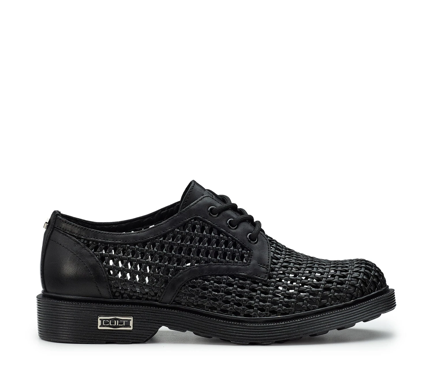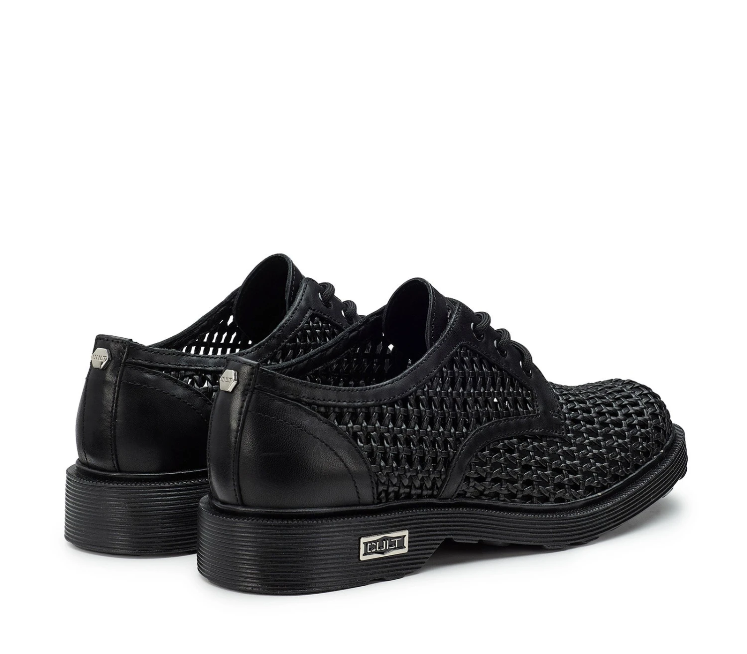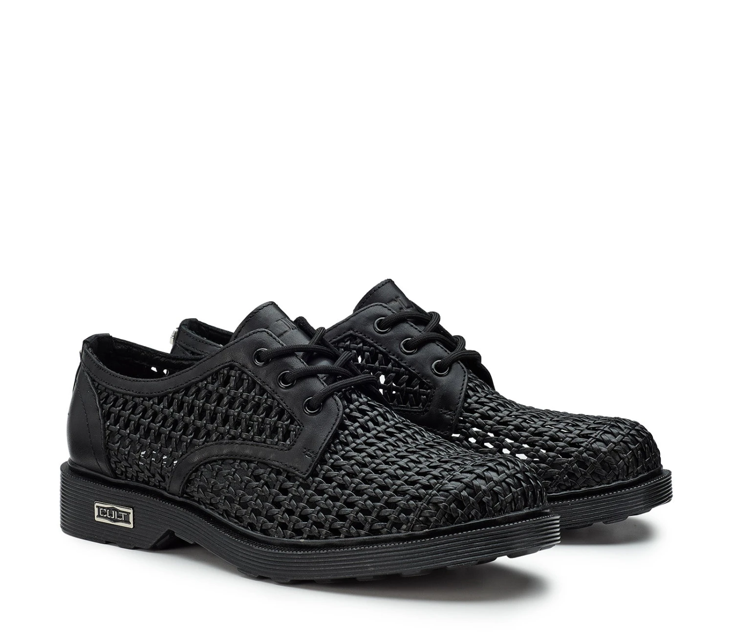 La creatività stilistica si combina con il fascino unico e inimitabile di questa derby da uomo firmata Cult per questa stagione. La scarpa è realizzata in pelle intrecciata e poggia su una suola in gomma personalizzata con l’iconica targhetta metallica. La costruzione sfoderata rende la scarpa particolarmente indicata per i look estivi.