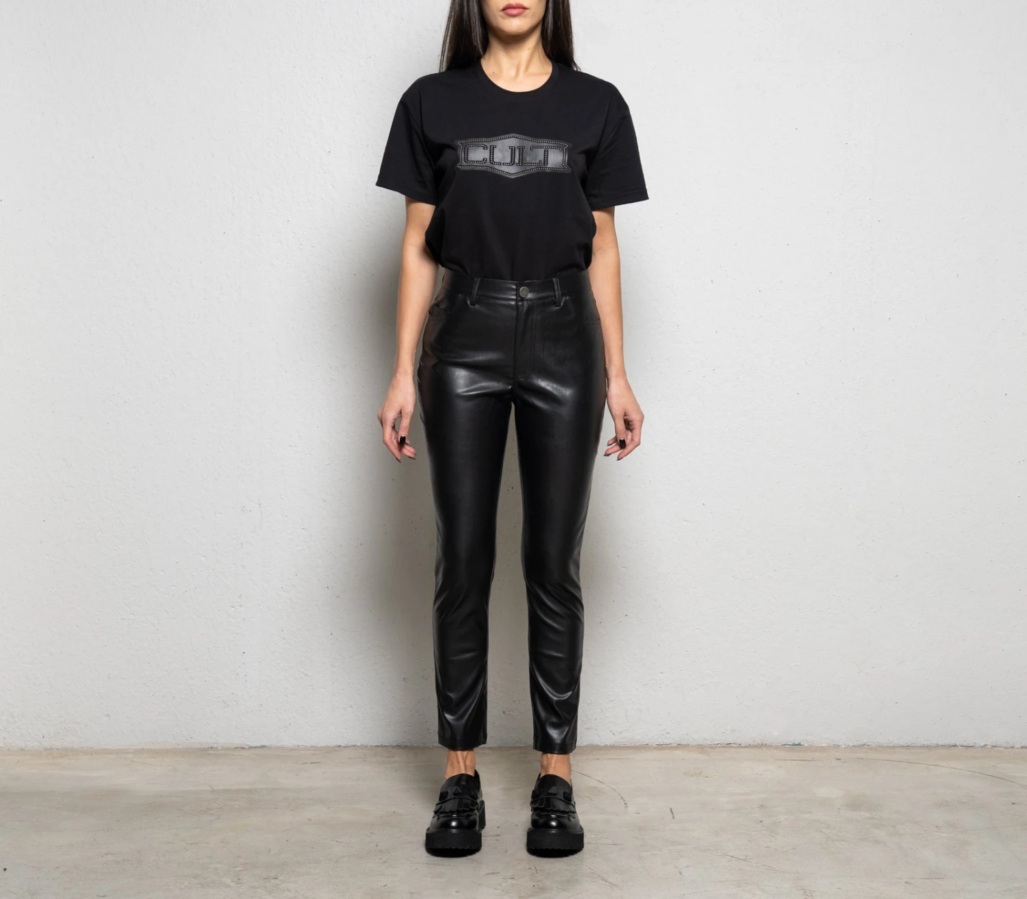 Attitudine da rocker assicurata con i pantaloni di Cult e la loro linea skinny che scolpisce la silhouette con impeccabile femminilità. La similpelle li consacra a compagni di sneakers in look daytime o alleati di stivaletti in mise serali per dettare tendenza in ogni occasione.