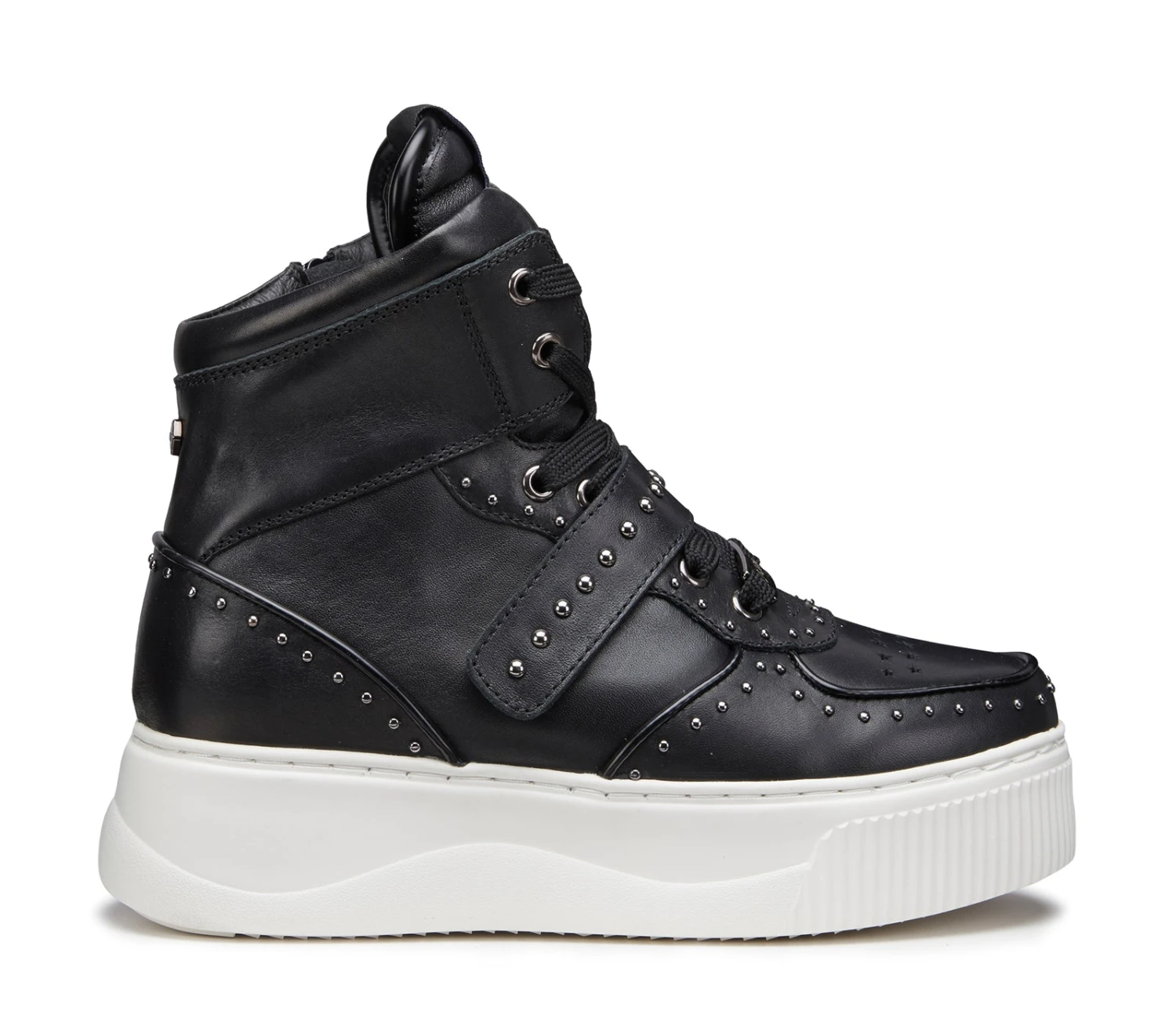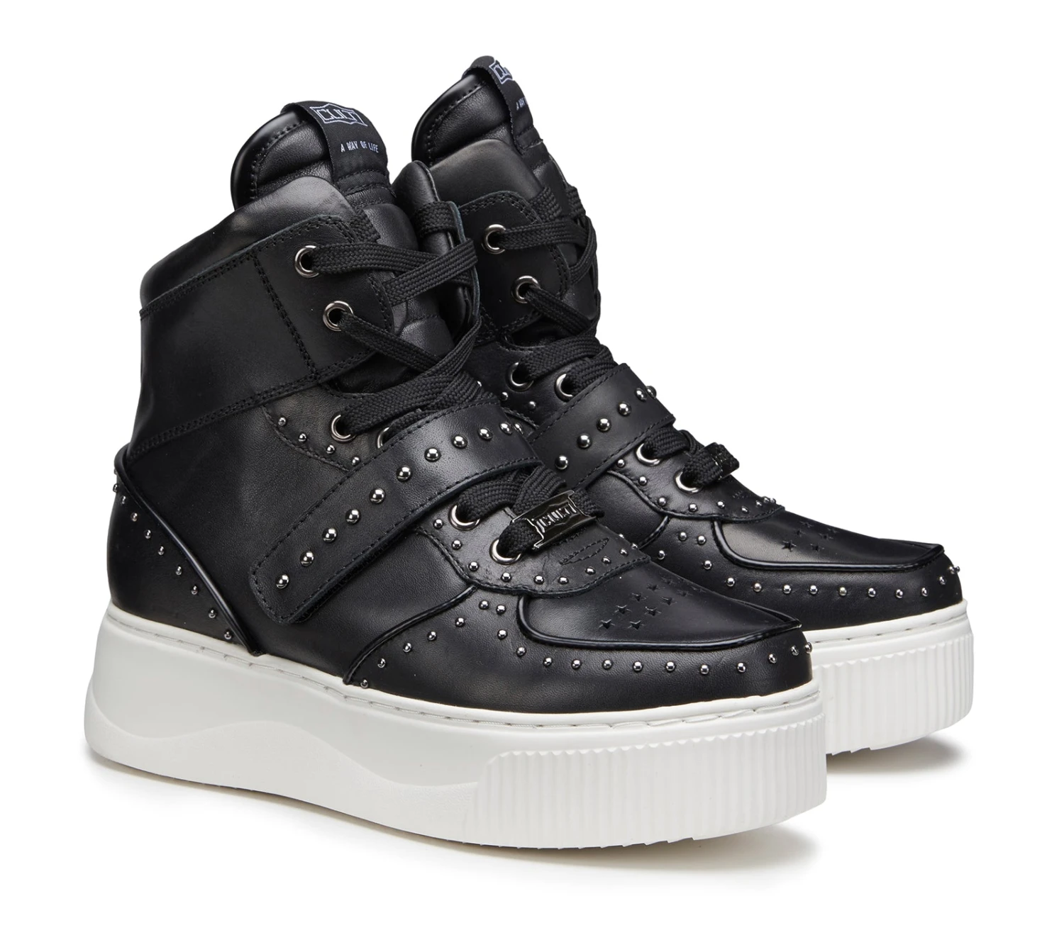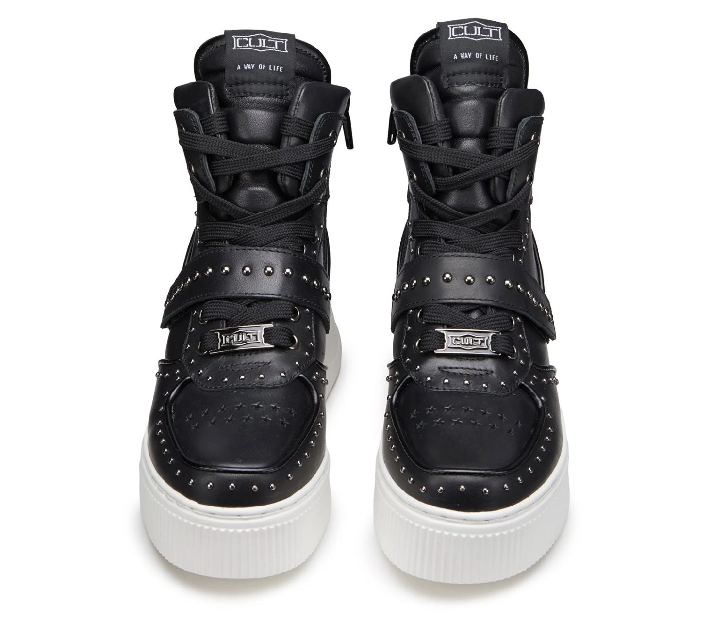 Per un look urbano d’effetto, indossate le sneakers firmate Cult. Modello basket alto in pelle personalizzato grazie alla linguetta logata in tessuto e reso originale dallo strap frontale borchiato.