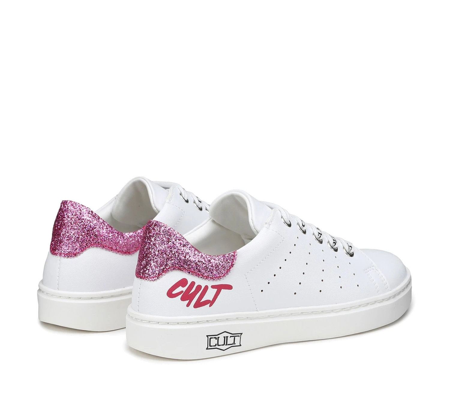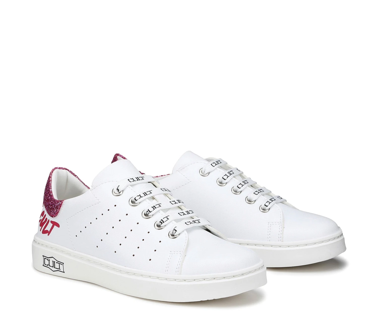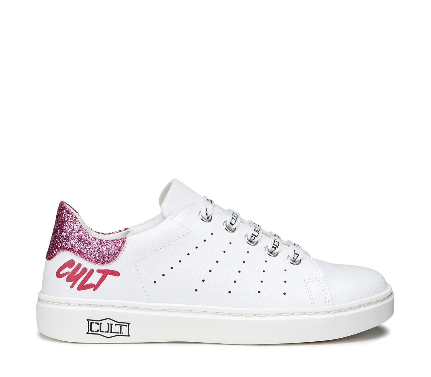Le sneakers di Cult Kids sono perfette per le avventure quotidiane dei più piccoli. Il modello stringato è realizzato in ecopelle bianca con la tomaia traspirante che presenta il logo a contrasto laterale.